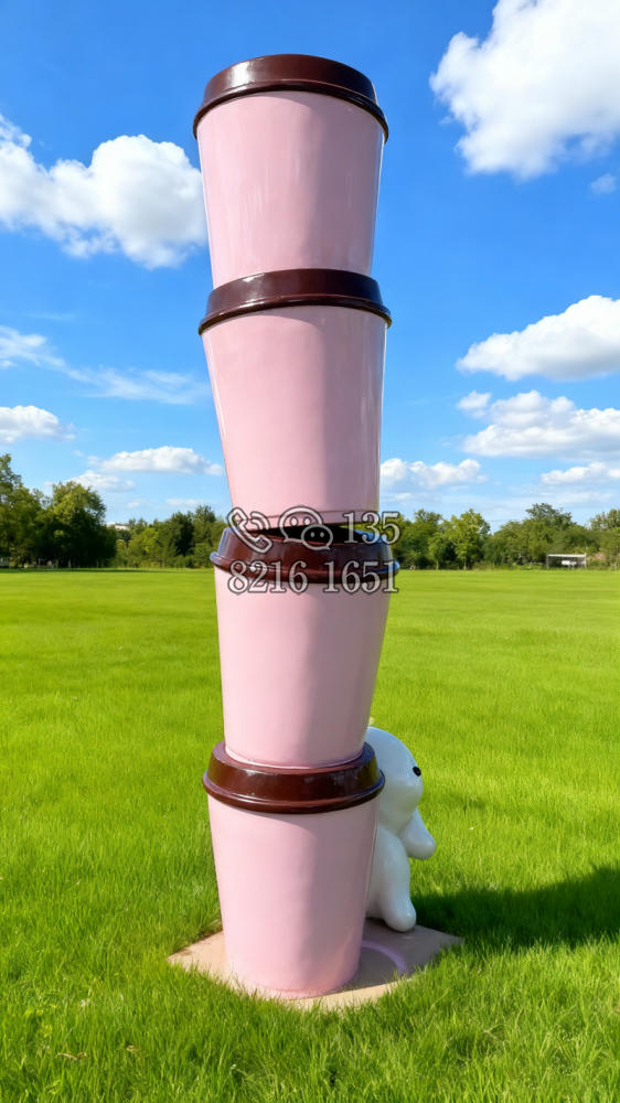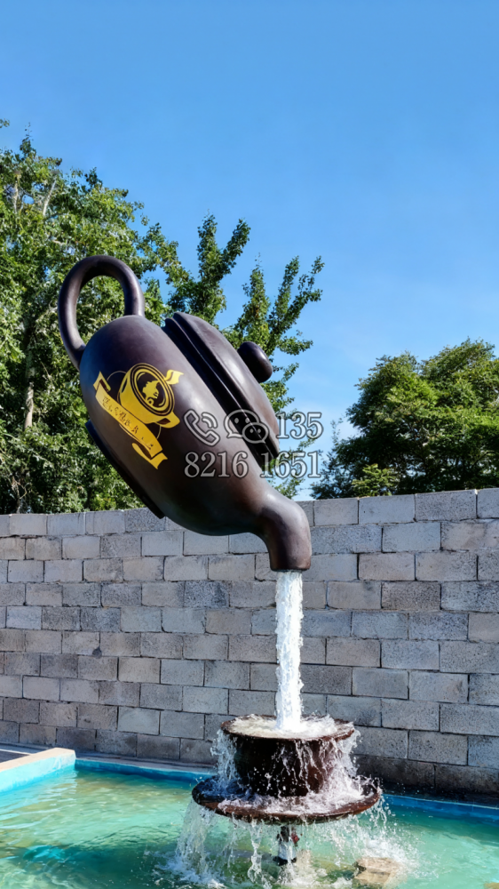 玻璃鋼材質,仿陶罐,大型流水景觀雕塑??偢?米,頂部陶罐長1.26米,中間主體陶罐高4.1米,去除底部一圈陶罐和外部飄帶造型,內置水管水泵,水被抽入頂部陶罐,再從陶罐口留出,形成水流源源不斷永遠流不完的錯覺。
