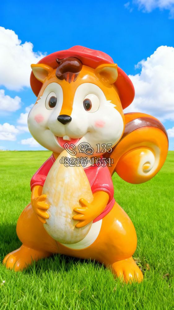 手抱堅(jiān)果的玻璃鋼卡通松鼠雕塑