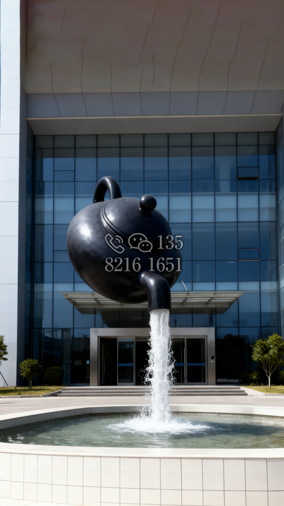 玻璃鋼材質(zhì),仿陶罐,大型流水景觀雕塑。總高6米,頂部陶罐長(zhǎng)1.26米,中間主體陶罐高4.1米,去除底部一圈陶罐和外部飄帶造型,內(nèi)置水管水泵,水被抽入頂部陶罐,再?gòu)奶展蘅诹舫?,形成水流源源不斷永遠(yuǎn)流不完的錯(cuò)覺。