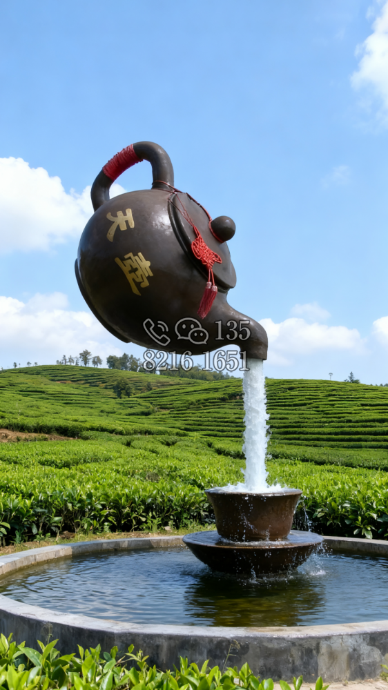 玻璃鋼材質(zhì),仿陶罐,大型流水景觀雕塑??偢?米,頂部陶罐長(zhǎng)1.26米,中間主體陶罐高4.1米,去除底部一圈陶罐和外部飄帶造型,內(nèi)置水管水泵,水被抽入頂部陶罐,再?gòu)奶展蘅诹舫?,形成水流源源不斷永遠(yuǎn)流不完的錯(cuò)覺(jué)。