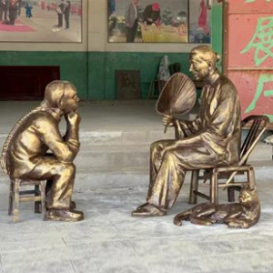 老奶奶講故事 玻璃鋼仿銅民俗生活人物