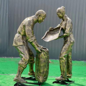 仿銅玻璃鋼農(nóng)耕收糧食人物