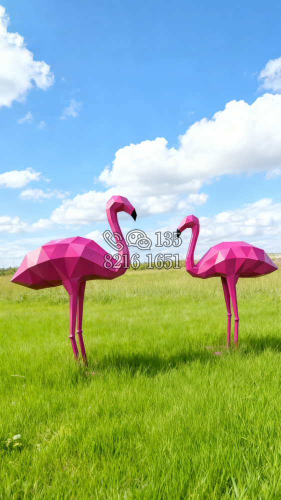 玻璃鋼幾何塊面火烈鳥(niǎo)雕塑 (2)
