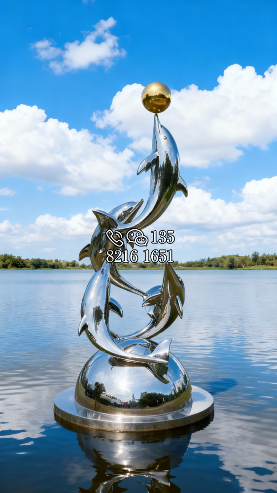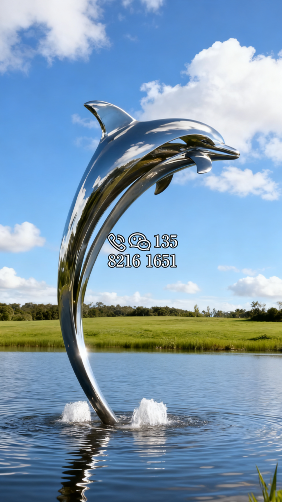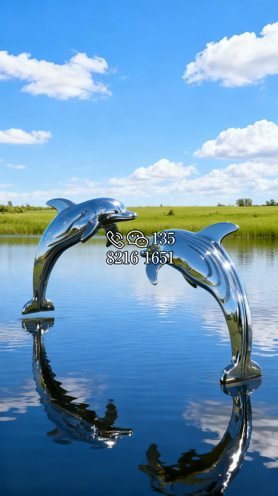 鏡面不銹鋼海豚雕塑 (6)