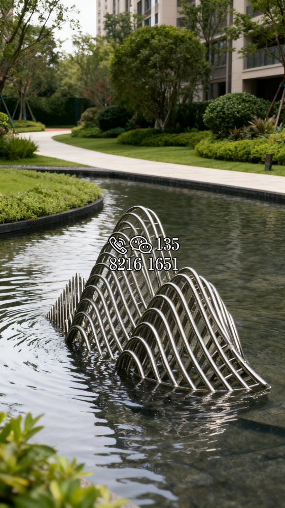 小區(qū)噴泉不銹鋼抽象假山雕塑