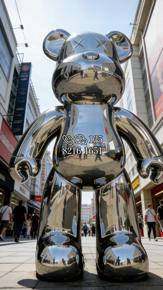 鏡面不銹鋼熊雕塑 (5)