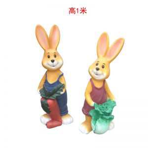 抱白菜兔子玻璃鋼