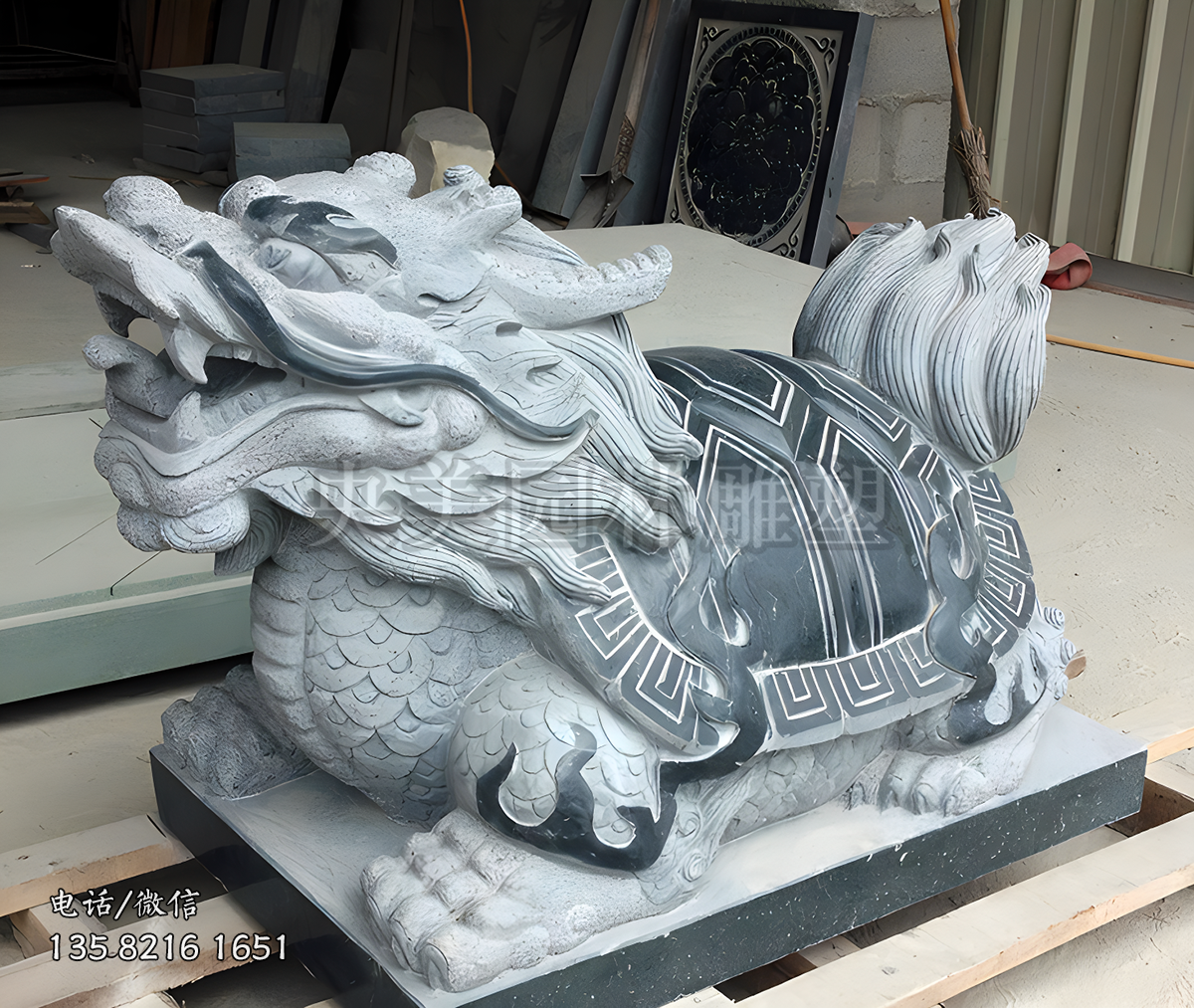 首頁(yè)>動(dòng)物>瑞獸>>龍龜>青石雕刻龍龜?shù)袼?/strong>